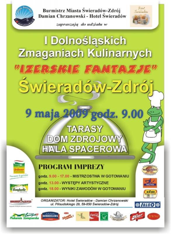 Zapraszamy Państwa do udziału w imprezie pn. I Dolnośląskie Zmaganie Kulinarne "Izerskie Fantazje", która odbędzie się w Świeradowie-Zdroju w dniu 9 maja 2009 r.