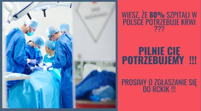Apelujemy do Państwa ! Mocno spadły nam stany krwi a szczególnie potrzebne są grupy: O Rh-, O Rh+, A Rh-, A Rh+, B Rh-