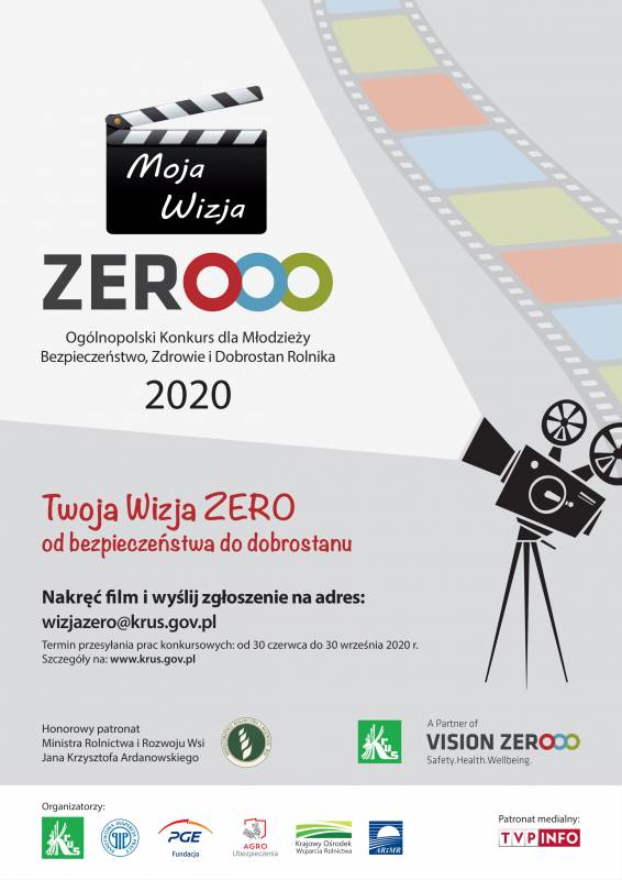 Konkurs adresowany jest do młodzieży w wieku 15-24 lata, został przedłużony i będzie trwał do 20 października 2020r. i polega na przygotowaniu krótkiego (max. 2 –minutowego) filmu promocyjnego pod hasłem „Moja Wizja Zero - Bezpieczeństwo, Zdrowie i Dobrostan Rolnika”.