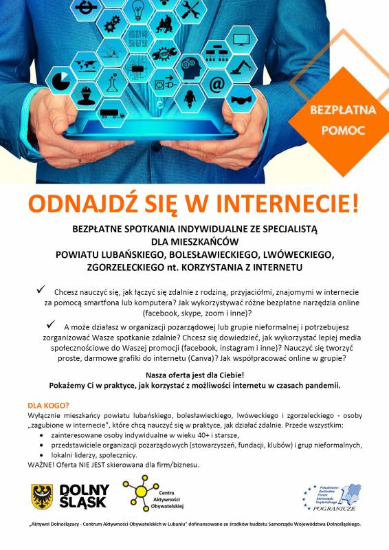 BEZPŁATNE SPOTKANIA (INDYWIDUALNE) ZE SPECJALISTĄ DLA MIESZKAŃCÓW POWIATU LUBAŃSKIEGO, BOLESŁAWIECKIEGO, LWÓWECKIEGO, ZGORZELECKIEGO nt. KORZYSTANIA Z INTERNETU