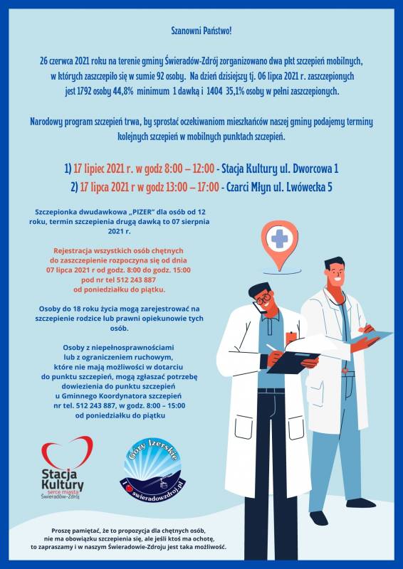 SZCZEPIENIA W ŚWIERADOWIE-ZDROJU - PFIZER - 17.07.2021 r.