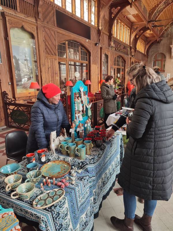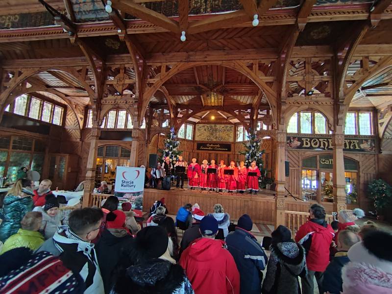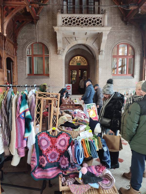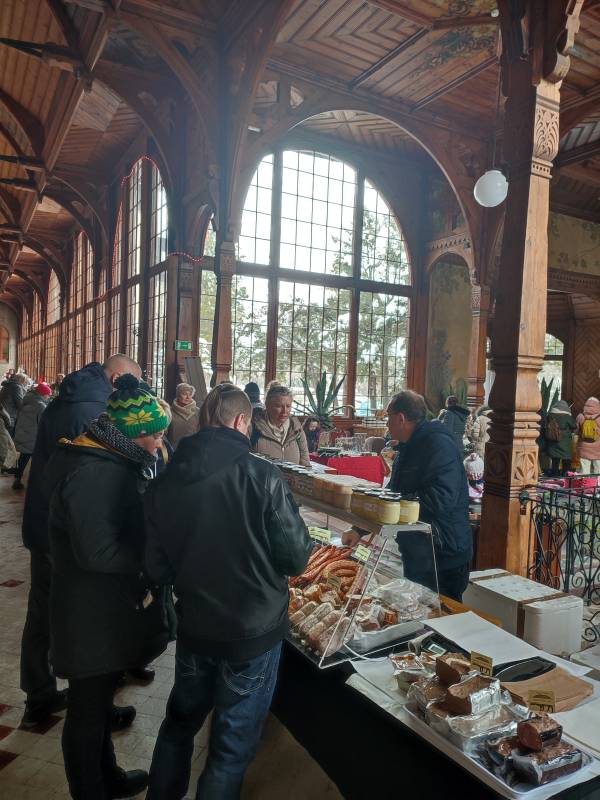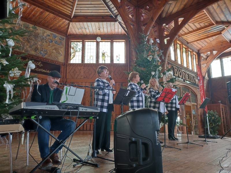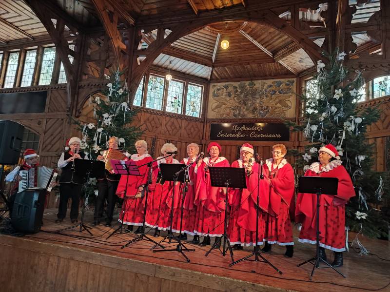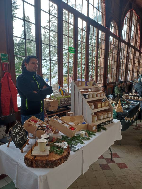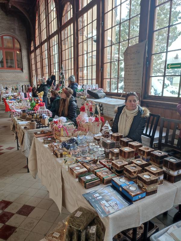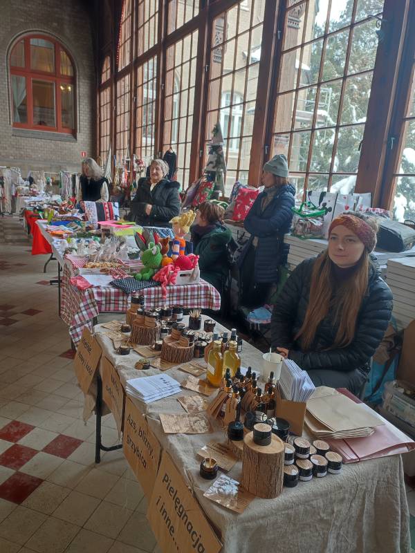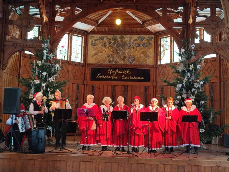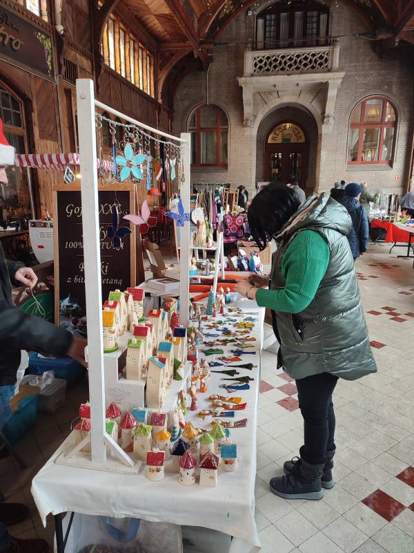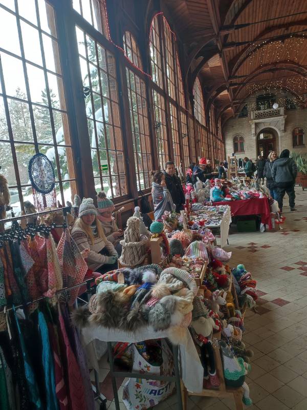 W tym roku na szczęście pandemia nie pokrzyżowała nam planów, co umożliwiło nam na zorganizowanie tego wyjątkowego wydarzenia w najpiękniejszej scenerii (do tego jakby przeznaczonej!) - w Hali Spacerowej Domu Zdrojowego. Sprzyjająca zimowa aura w tym roku również nas nie zawiodła i niewątpliwie - w połączeniu z pięknymi dekoracjami świątecznymi - dodawała uroku całemu wydarzeniu. W tym jednym dniu pojawiło się około na Hali ponad 40 wystawców. Wachlarz wystawionych produktów robił wrażenie. Oprócz pyszności przygotowanych przez Koła Gospodyń Wiejskich, które zrobiły furorę, na jarmarku znalazły się również stoiska Stowarzyszeń oraz innych przedsiębiorców i hobbystów. Mogliśmy kupić mnóstwo dekoracji świątecznych, ozdoby szydełkowe, wełniane szaliki, czapki, swetry, przepięknie pachnące świece sojowe, wianki, ceramikę izerską oraz bolesławiecką, choinki, bombki, biżuterię, rękodzieło drewniane i wiele, wiele innych cudowności. W świąteczny nastrój uczestników wydarzenia wprowadziły urocze Panie z zespołu Syntonia ze Świeradowa-Zdroju, zachęcając publiczność do wspólnego kolędowania oraz energiczne Izerskie Bogdanki z Mirska. Natomiast dla naszych Milusińskich przygotowaliśmy bezpłatne warsztaty, gdzie każdy mógł wykonać bombkę lub choinkę techniką decoupage. Niewątpliwie gwiazdkowy nastrój udzielił się wszystkim odwiedzającym jarmark i skutecznie wprowadził Świeradowian i Gości w świąteczny klimat Bożego Narodzenia.