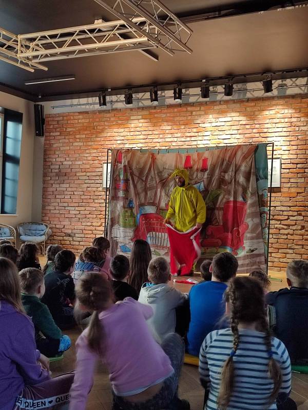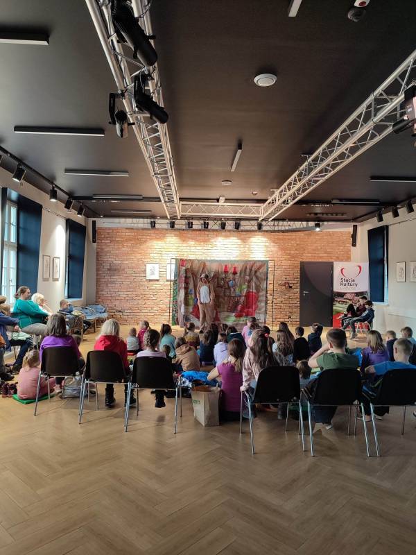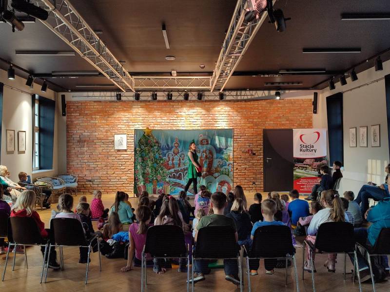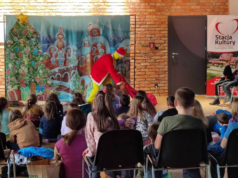 Dzięki znakomitym aktorom z Teatru Blaszany Bębenek zgromadzona w Stacji Kultury publiczność – zarówno ta młodsza, jak i ta nieco starsza – przeniosła się 16 lutego na chwilę do k rainy ekstrawagancki ego Grincha . Z kolei 23 lutego ten sam teatr zabrał nas w podróż wraz z Baltazarem Gąbką.