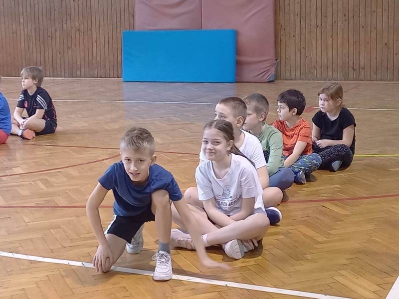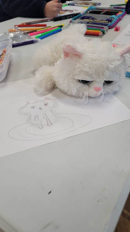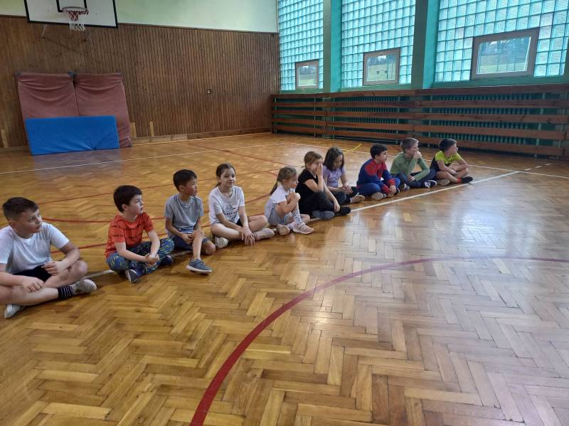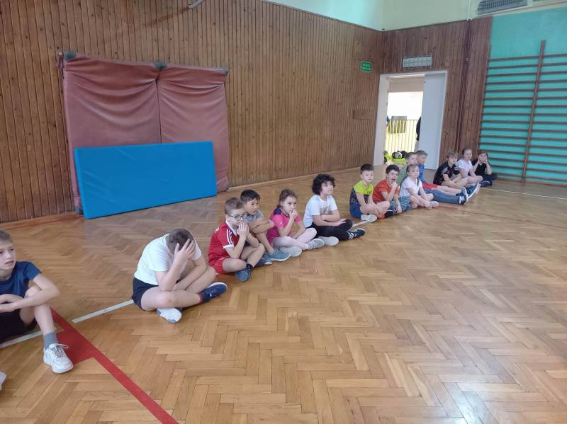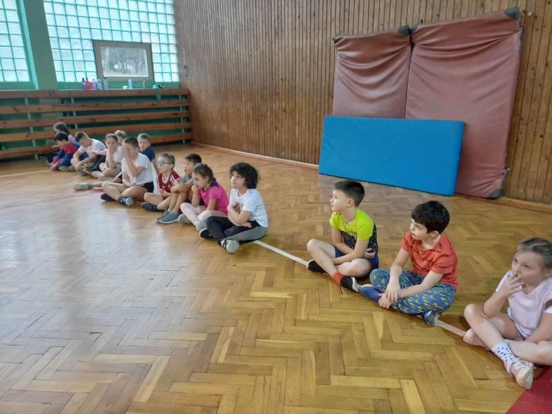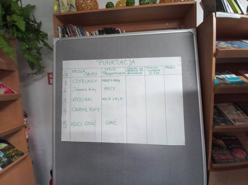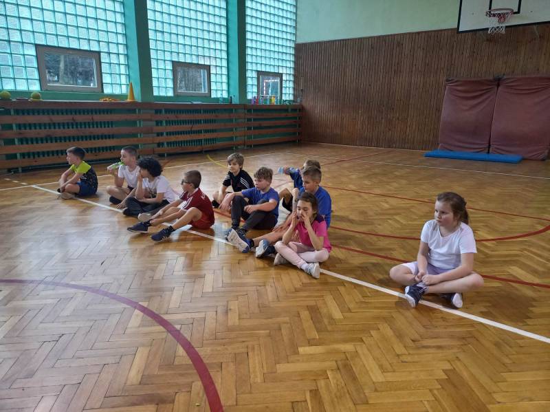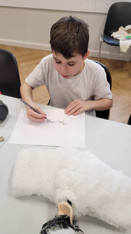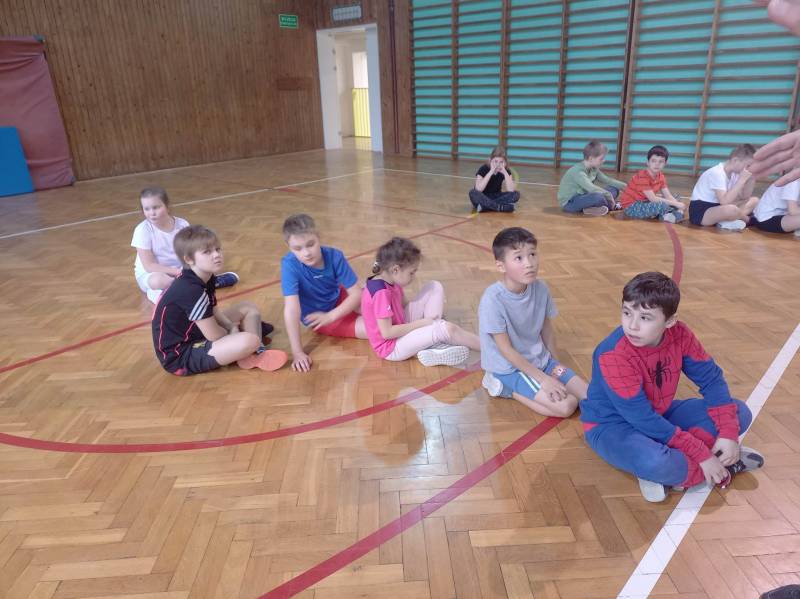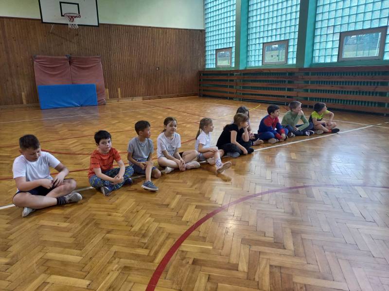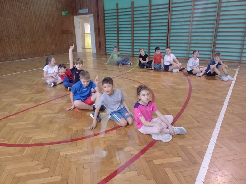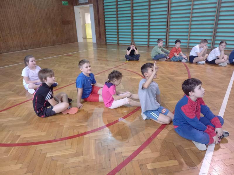 Trzeciego dnia zajęć obchodz ono Światowy Dzień Kota! Z tej okazji dzieci wykona ły prace plastyczne na konkurs w MBP „Izerka” oraz wystawiły przedstaw ienie z kotami w rolach głównych. Na zakończenie ostry wycisk zafundował im Pan Tomek Gajewski, z którym tańczyli i ćwiczyli.