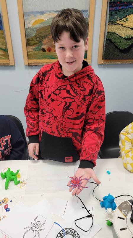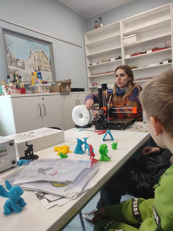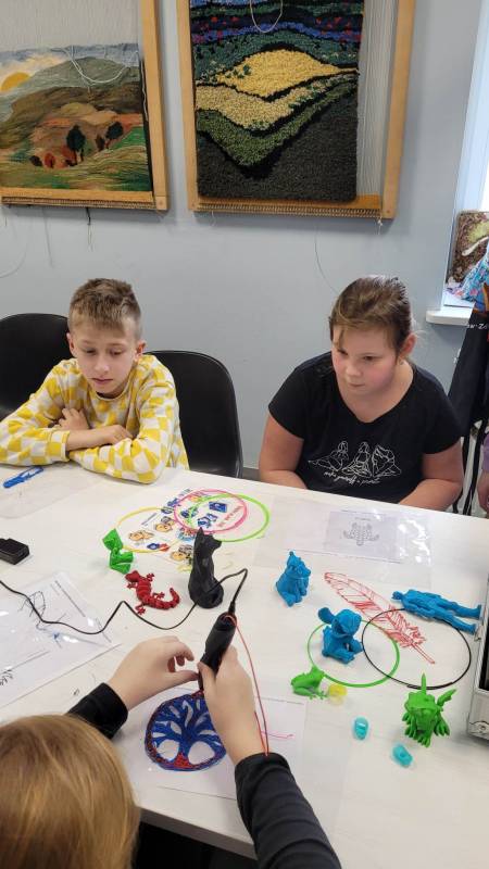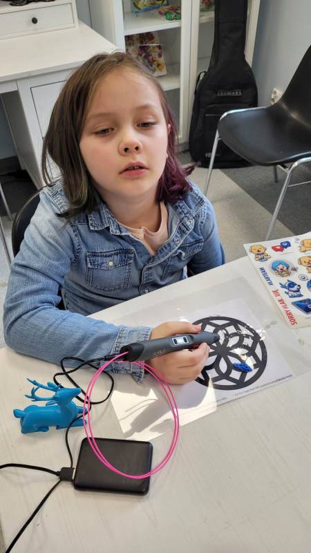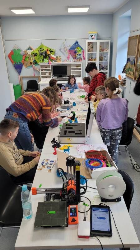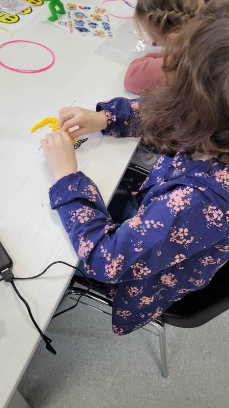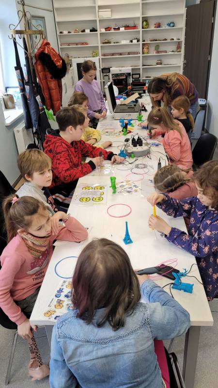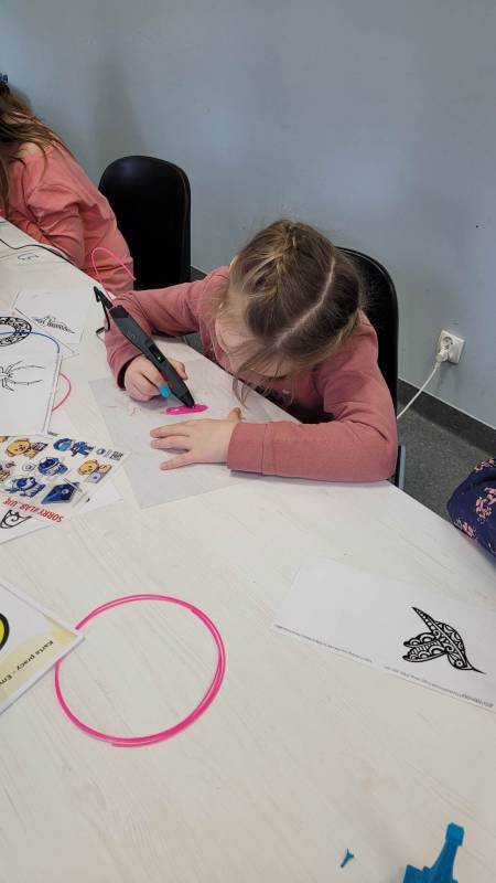 Drugi tydzień ferii uczestnicy rozpoczęli pełną przygód wędrówk ą po lesie z Leśnikiem Zygmuntem Czajką. Dowidziel i się dużo o przyrodzie oraz o dokarmianiu zwierząt zimą. Tego dnia naszą Stację Kultury o dwiedzili edukatorzy z Mobilnych Laboratoriów Przyszłości, którzy pokazali najmłodszym , jak działa wirtualna rzeczywistość. Najbardziej jednak uczestnikom zajęć spodobały się warsztaty z druku 3D. Za pomocą pistoletów wydrukowali trójwymiarowe ozdoby.