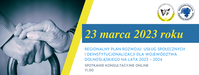 Dolnośląska Federacja Organizacji Pozarządowych i Dolnośląski Ośrodek Polityki Społecznej zapraszają do uczestnictwa w spotkaniu konsultacyjnym online dotyczącym Projektu Regionalnego Planu Rozwoju Usług Społecznych i Deinstytucjonalizacji dla Województwa Dolnośląskiego na lata 2023 – 2024