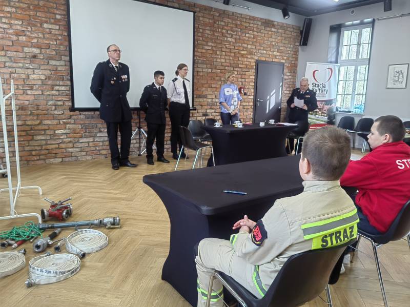 30.03.2023 r. w Stacji Kultury odbył się Ogólnopolski Turniej Wiedzy Pożarniczej "Młodzież zapobiega pożarom". Prócz wiedzy teoretycznej, młodzież musiała wykazać się także wiedzą praktyczną. Oczywiście wszyscy spisali się na medal, jednak do kolejnego etapu, powiatowego, przeszli: Zosia Bigus, Zuzanna Olkowska oraz Filip Daszko. Gratulujemy i trzymamy za Was kciuki!