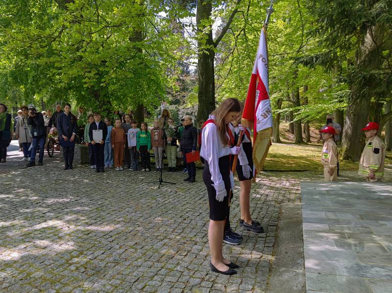 Kwiaty złożone zostały także na Mogile Zbiorowej Ofiar Faszyzmu 1939-1945, która znajduje się na naszym Cmentarzu Komunalnym.