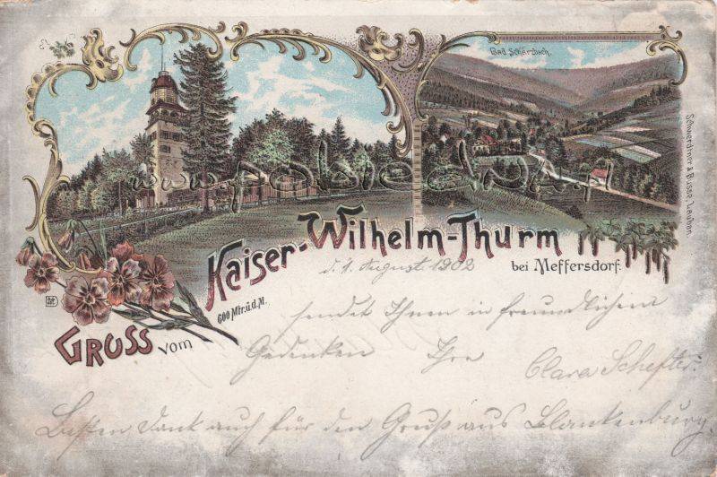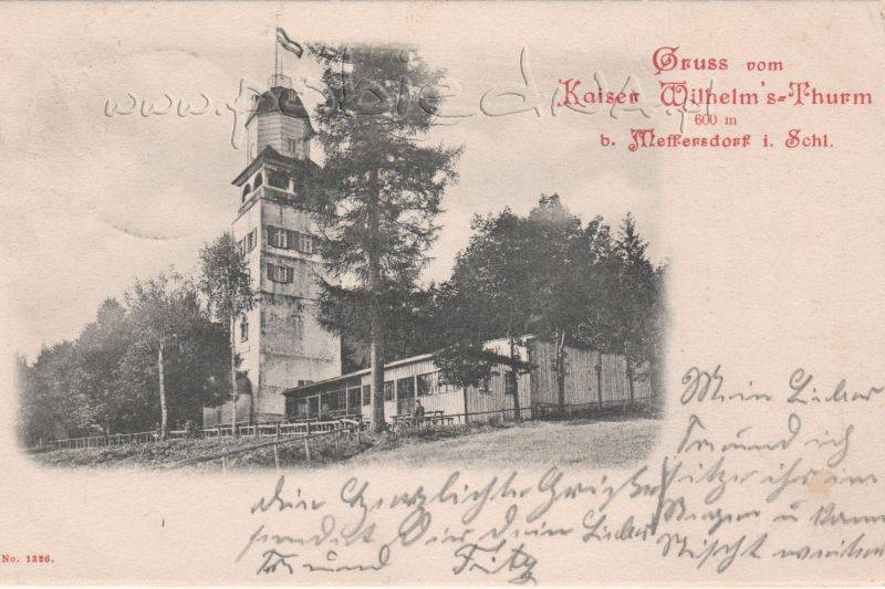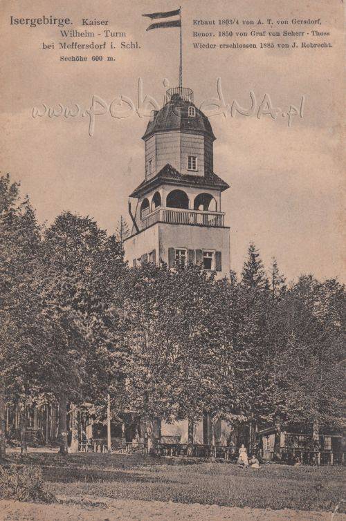 The Mon Plaisir Tower (in Polish: Wieża "Mon Plaisir") was established in the village of Pobiedna to the north-west of Świeradów-Zdrój. It was built in the years 1803-4 for the scientist Adolf Traugott, Count von Gersdorff, a graduate of Leipzig University. The tower served as an astronomical observatory and his workroom. In 1850 the tower was renovated and has functioned since then as an inn and a hotel. In 1886 the name Mon Plaisir was changed to Kaiser-Wilhelm Tower. Following the Second World War it fell gradually into ruin, and today of the beautiful tower and inn only fragments of wall remain.