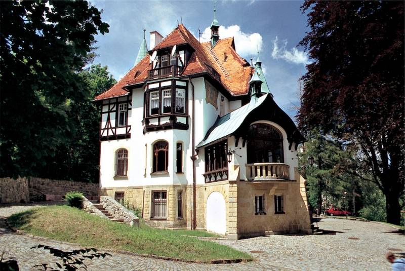 This villa, its name meaning ‘Dream’, was founded in 1901 by the Berliner industrialist Julius Pintsch. The complex comprises the main building, an outhouse in a garden and a park with a fountain, as well as a number of auxiliary buildings. The architecture is an example of a Swiss style popular and widely used for country residences at the end of the 19th century.
