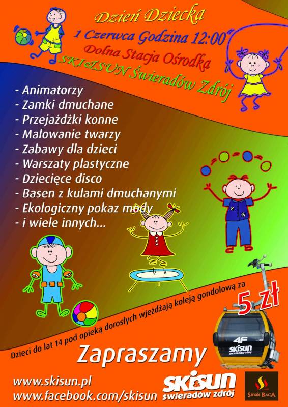 Dzieci do lat 14 pod opieką dorosłych wjeżdżają koleją gondolową za 5 zł oraz w ramach przejazdu otrzymują możliwość skorzystania z dwóch dowolnych atrakcji na dolnej stacji kolei gondolowej.