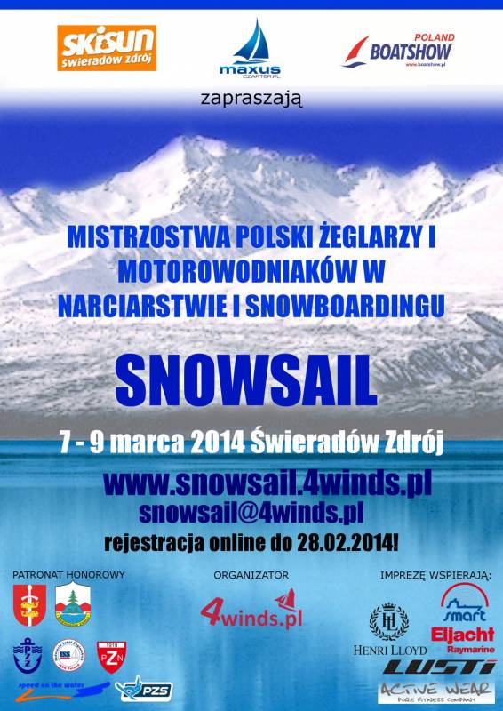 Na początku marca Świeradów Zdrój będzie gościł żeglarzy i motorowodniaków z całej Polski. Na stoku Ski&Sun odbędą się Mistrzostwa Polski Żeglarzy i Motorowodniaków w Narciarstwie i Snowboardingu SNOWSAIL 2014. Organizatorem imprezy jest szkoła żeglarstwa 4winds z Gdyni. Na jednej lub dwóch deskach ścigać się będą miłośnicy żagli i motorówek. Wystartować będzie mógł każdy, kto posiada dowolny patent żeglarski lub motorowodny. W zawodach będą mogli wziąć też udział ci, którzy nie posiadają uprawnień, ale lubią żeglować. Wystarczy mieć ze sobą zdjęcie na jachcie żaglowym lub motorowym. Trasa zawodów pozwala na uczestnictwo zarówno początkujących, jak i bardziej zaawansowanych. Intencją organizatorów, szkoły żeglarstwa 4winds z Gdyni, jest nie tylko twarda sportowa rywalizacja, ale przede wszystkim wspólna zabawa.