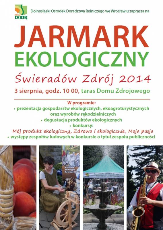 Dolnośląski Ośrodek Doradztwa Rolniczego we Wrocławiu zaprasza na Jarmark Ekologiczny do Świeradowa Zdroju. Jarmark rozpocznie się w niedzielę 3 sierpnia o godzinie 10.00, na tarasie Domu Zdrojowego.