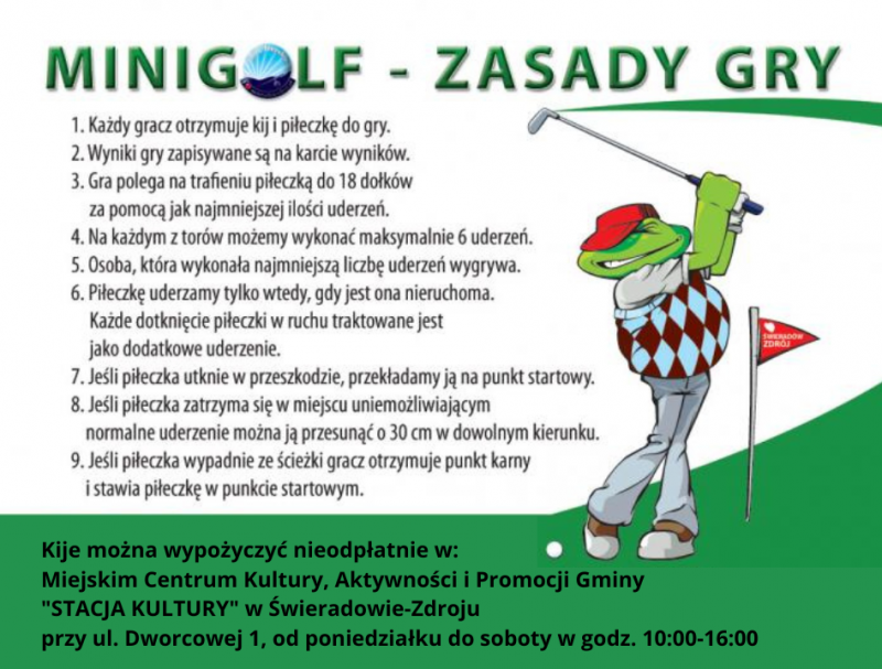 • Miejskim Centrum Kultury, Aktywności i Promocji Gminy "STACJA KULTURY" w Świeradowie-Zdroju przy ul. Dworcowej 1, od poniedziałku do piątku w godz. 10:00-16:00 - nieodpłatnie