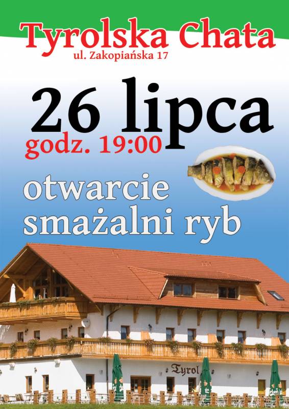Zapraszamy Państwa na otwarcie smażalni ryb przy Tyrolskiej Chacie - 26 lipca (sobota) o godz. 19.00. Muzyka na żywo
