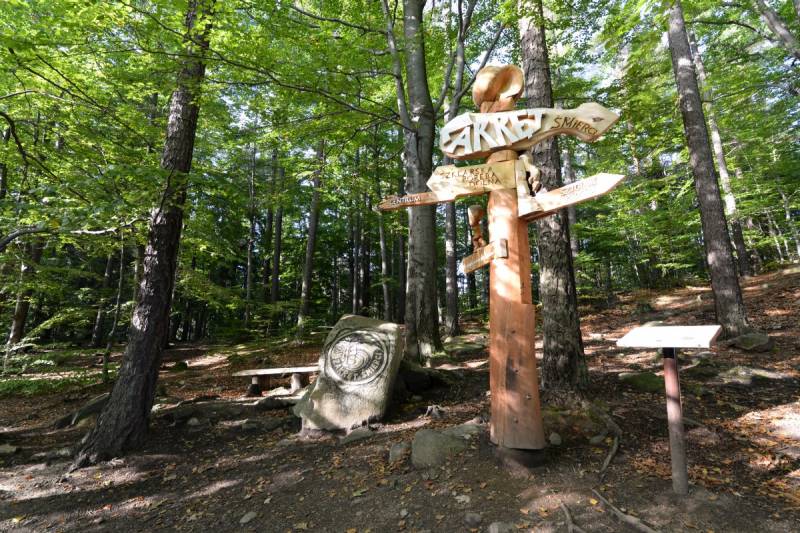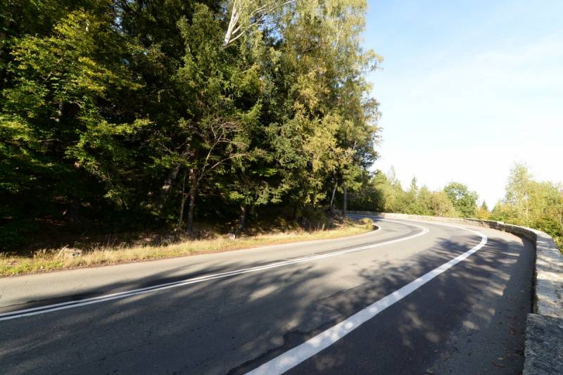 This is a hairpin bend (180o, in Polish: Zakręt Śmierci) on road no. 362 from Świeradów-Zdrój to Szklarska Poręba, 18 km from Świeradów-Zdrój. It has a scenic spot with a view of the Karkonosze Mts. and Jelenia Góra Valley. Around 45 minutes from the bend on foot is Wysoki Kamień refuge. Distance: 18 km.