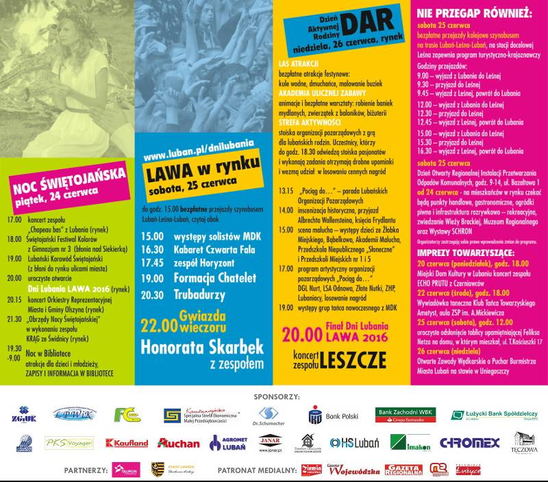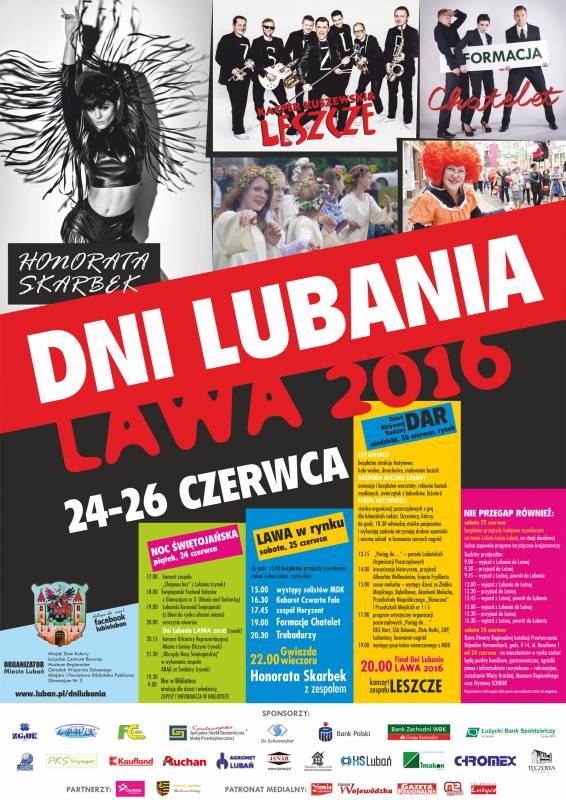 20.00 - uroczyste otwarcie Dni Lubania LAWA 2016 (rynek)