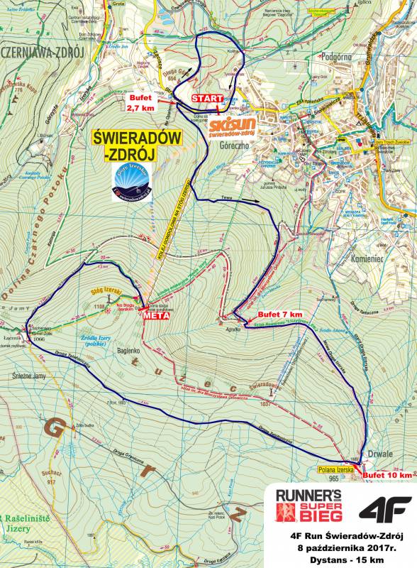 To również jedyny alpejski bieg zaliczany do RWSB. Rywalizacja toczyć się będzie na dwóch dystansach - 15 i 10 km. W obu przypadkach meta zlokalizowana będzie przy górnej stacji kolei, tuż pod szczytem Stogu Izerskiego. Dla wszystkich finisherów, jak zwykle, gratisowy powrót wyciągiem w dół. Jeśli chodzi o klasyfikację generalną, to dystans 15 km pełni w Świeradowie rolę zwyczajowego w RWSB półmaratonu, a "dycha" pozostaje "dychą", z tym że będzie to "dycha" w stylu alpejskim.
