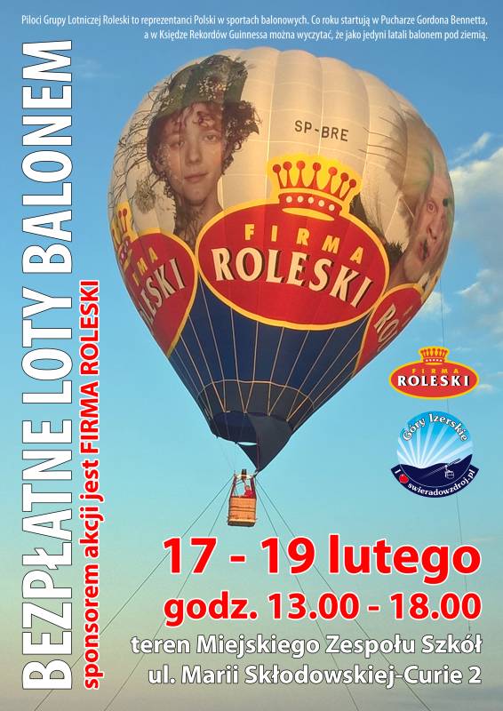 uniesienia się w górę w koszu balonu "REPUBLIKA ROLESKI". Uczestnicy zabawy będą w dobrych rękach. Piloci Grupy Lotniczej Roleski to reprezentanci Polski