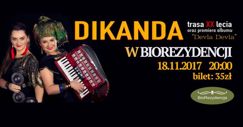 DIKANDA to powstały w Szczecinie, uznany szczególnie na zagranicznym rynku muzycznym zespół grający world music. W swojej twórczości Dikanda stawia na autentyczność stylu – poszukuje nowych nurtów i większość utworów jest oryginalnymi kompozycjami. Muzyczne inspiracje czerpie z tradycyjnych, folkowych brzmień szeroko rozumianego orientu – od Bałkanów, przez Izrael, Kurdystan, Białoruś po Indie. W ich utworach można usłyszeć głównie brzmienia bałkańskie i cygańskie. Zespół istnieje od 1997 r. Dikanda ma w swoim dorobku 7 płyt – w tym DVD Live nagrywane w zakopiańskim Teatrze Witkacego; setki koncertów (głównie w Niemczech, Austrii i Szwajcarii, ale również w Rosji, Indiach oraz w USA), zdobyli także liczne nagrody - w tym "Płyta roku" niemieckiego czasopisma "Folker" przyznana w 2005 roku za "Usztijo". Koncerty Dikandy to niezwykle emocjonalna podróż po etnicznych brzmieniach, żywiołowe spotkanie pełne energii, charyzmy, prawdziwych uczuć. Charakterystyczne dla Dikandy jest tworzenie nowych słów w tekstach utworów, w ten sposób powstał oryginalny język grupy - "dikandisz". Najważniejszy w twórczości zespołu jest przekaz, który jest relacją między artystami a publicznością.