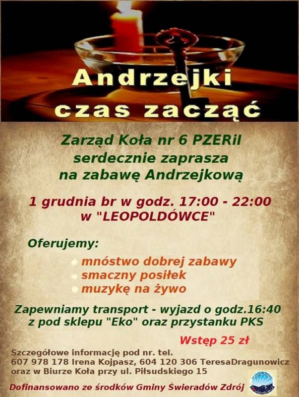 Polski Związek Emerytów, Rencistów i Inwalidów koło w Świeradowie-Zdroju zaprasza seniorów na Zabawę Andrzejkową