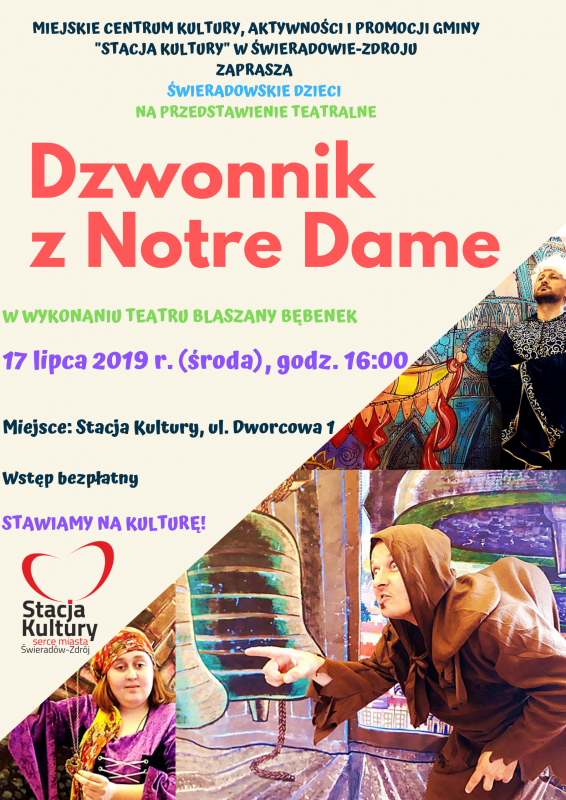 Serdecznie zapraszamy świeradowskie dzieci na spektakl teatralny pt. "Dzwonnik z Notre Dame".