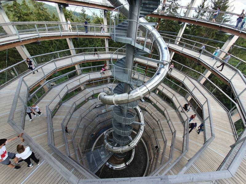 Trasa o długości ponad 1500 m prowadząca na szczyt 45 metrowej wieży znajduje się w sercu majestatycznych lasów Karkonoskiego Parku Narodowego. Ścieżka jest w całości przystosowana do osób niepełnosprawnych oraz rodziców z dziećmi w wózkach. Otwarte codziennie od 10.00. Bilety 190-250 CZK. 80 km.