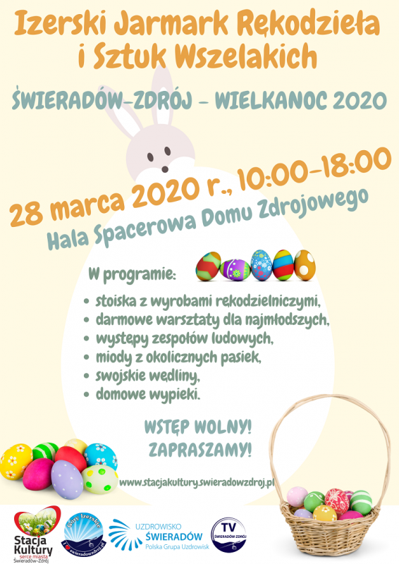 W sobotę, 28 marca 2020 r. zapraszamy na Izerski Jarmark Rękodzieła i Sztuk Wszelakich – Wielkanoc 2020, który odbędzie się w Hali Spacerowej Domu Zdrojowego w Świeradowie-Zdroju.