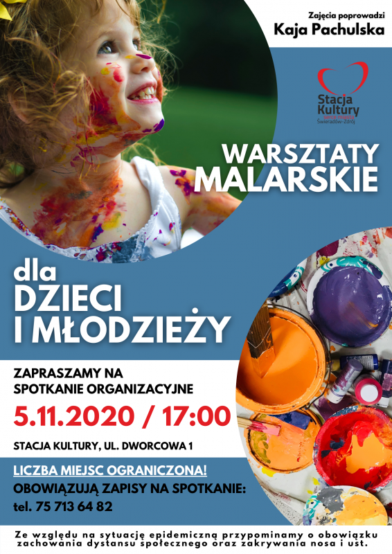 Niestety, ze względu na nowe obostrzenia związane z epidemią, zmuszeni jesteśmy ponownie zawiesić odbywające się aktualnie zajęcia oraz tymczasowo wstrzymać się z organizacją spotkań informacyjnych w sprawie nowych zajęć. Mimo to zapisy w dalszym ciągu są aktualne, a spotkania organizacyjne odbędą się online w formie multimedialnej na profilu Stacji Kultury na Facebooku - opublikowanego w terminie, kiedy odbyć się miało spotkanie.