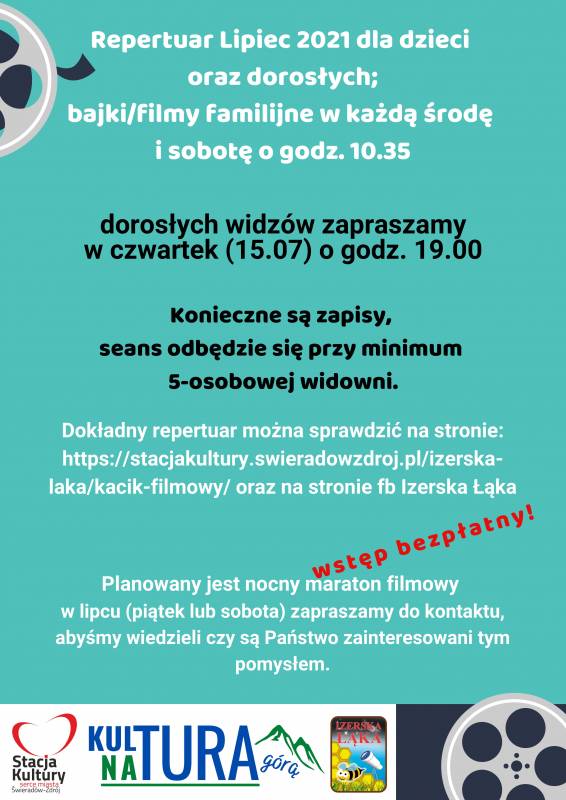 PS: Planowany jest nocny maraton filmowy w lipcu (piątek, sobota) jednak prosimy o kontakt, abyśmy wiedzieli czy są Państwo zainteresowani tym pomysłem.
