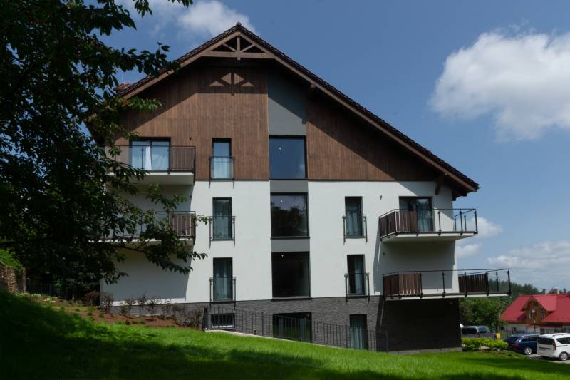 Oferujemy w nowo wybudowanym obiekcie w Świeradowie Zdroju apartamenty na wynajem. Apartamenty dwupokojowe o powierzchni 40-42 metrów kwadratowych. Każdy apartament składa się z salonu z aneksem kuchennym, sypialni, łazienki oraz balkonu lub tarasu. Budynek w idealnej lokalizacji pod względem turystycznym. Jest usytuowany przy ulicy Wczasowej, w odległości 250 metrów od deptaku, a jednocześnie około 600-650 metrów od dolnej stacji kolei gondolowej dając na wyciągnięcie ręki wiele atrakcji regionu bez korzystania z samochodu. Obiekt jest monitorowany, ogrodzony, a do każdego apartamentu własne miejsce postojowe! Dbając o komfort i wygodę naszych gości, apartamenty wyposażyliśmy niczym mieszkania do codziennego użytku (kuchnia wraz z płyta grzewczą, lodówką, zmywarką, w sypialni oraz na przedpokoju duże szafy w zabudowie) dodając hotelowy poziom wyciszenia lokali. Ponadto w budynku przygotowaliśmy hole do zabaw z dziećmi na huśtawkach, a na terenie zewnętrznym przygotowaliśmy polankę do "plażowej" rekreacji. Każdy z oferowanych apartamentów jest przygotowany na czteroosobowy pobyt. W sypialni jest łoże małżeńskie z możliwością rozłączenia na dwie tzw. "jedynki", a w salonie znajduje się nowoczesna sofa, która po rozłożeniu pomieści dwie osoby w bardzo komfortowych warunkach. W każdym apartamencie jest telewizor z funkcją smart tv oraz internet. Ponadto w budynku jest winda, a część z lokali została wyposażona w klimatyzację! Obecnie oferujemy promocje z okazji otwarcia i cena za pobyt rozpoczyna się od kwoty 250 PLN za dobą za apartament. Zapraszamy do kontaktu i rezerwacji!