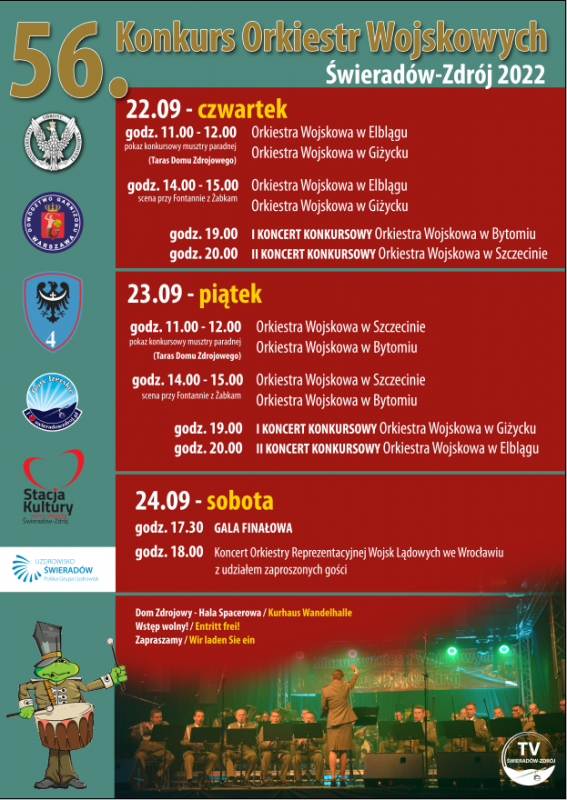 Organizator : Ministerstwo Obrony Narodowej, Gmina Miejska Świeradów-Zdrój, Miejskie Centrum Kultury, Aktywności i Promocji Gminy "Stacja Kultury" w Świeradowie-Zdroju