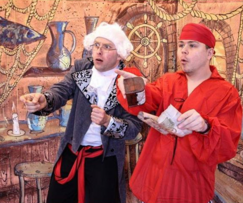 Spektakl inspirowany powieścią Roberta Luisa Stevensona opowiadający o losach piratów poszukujących ukrytego skarbu. Bohaterem spektaklu jest młody chłopak Jim. Traf sprawia, że bierze on udział w wyprawie poszukującej skarbu legendarnego kapitana Flinta. Nikt się jednak nie spodziewa, że wśród załogi statku znajduje się dawny towarzysz kapitan Flinta, który za wszelką cenę chce odzyskać łup.