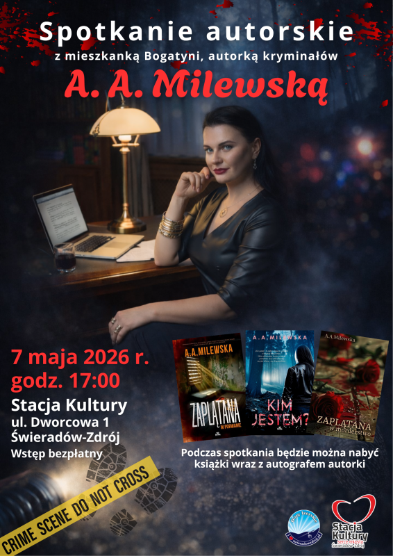 Już 7 maja w Stacji Kultury odbędzie się spotkanie autorskie z A. A. Milewską – mieszkanką Bogatyni i autorką powieści kryminalnych.