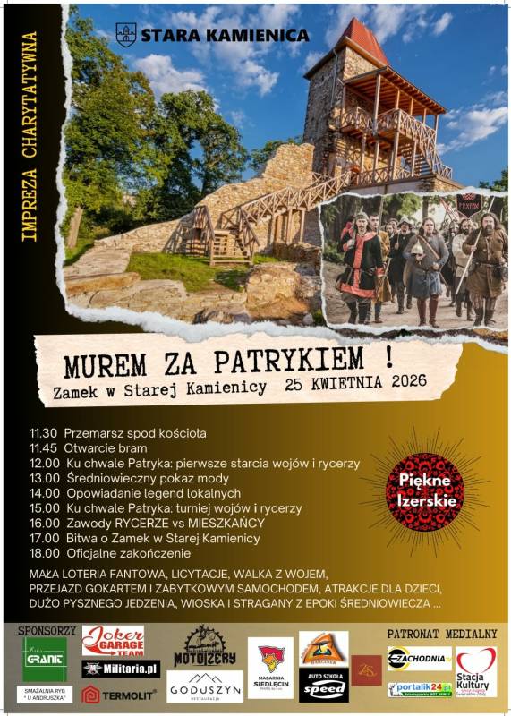 Mamy wielki zaszczyt zaprosić Państwa na imprezę charytatywną, która odbędzie się 25 kwietnia 2026 roku. Rekonstruktorzy na zamku w Starej Kamienicy przeniosą Państwa do średniowiecza, kiedy to po naszych ziemiach chadzali srodzy wojownicy, piękne damy i szlachetni rycerze. Ukazane zostaną czasy Pierwszych Piastów z X i XI w., kiedy to formuje się Państwo Polskie pod panowaniem Mieszka I, Bolesław Chrobry zostaje koronowany, a Mieszko II wojuje próbując dorównać swemu ojcu. Pokażemy także kulturę, stroje i obyczaje z XII i XIII w., kiedy to formuje się etos rycerski, odbywają się krucjaty a w Kotlinie Jeleniogórskiej i u podnóży Gór Olbrzymich rozkwita osadnictwo. Odwołamy się także do dokumentu sprzedaży zamku w Starej Kamienicy z 1242 r.