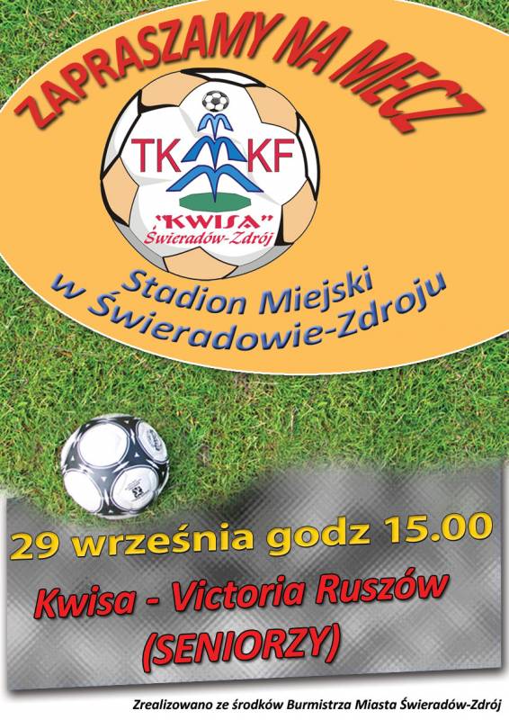 Zapraszamy 29.09. o godz. 15.00 na Stadion Miejski w Świeradowie-Zdroju, na mecz dużyn Kwisa - Victoria Ruszów.
