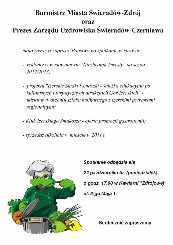 Burmistrza Miasta Świeradów-Zdrój oraz Prezes Zarządu Uzdrowiska Świeradów zapraszają na spotkanie w sprawie: