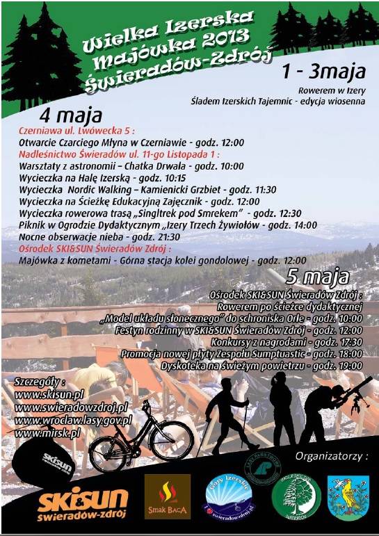 • 4 maja godz. 12.30 - Wycieczka rowerowa trasą "Singieltrek pod Smrkem" - start Nadleśnictwo Świeradów - ul. 11 Listopada 1