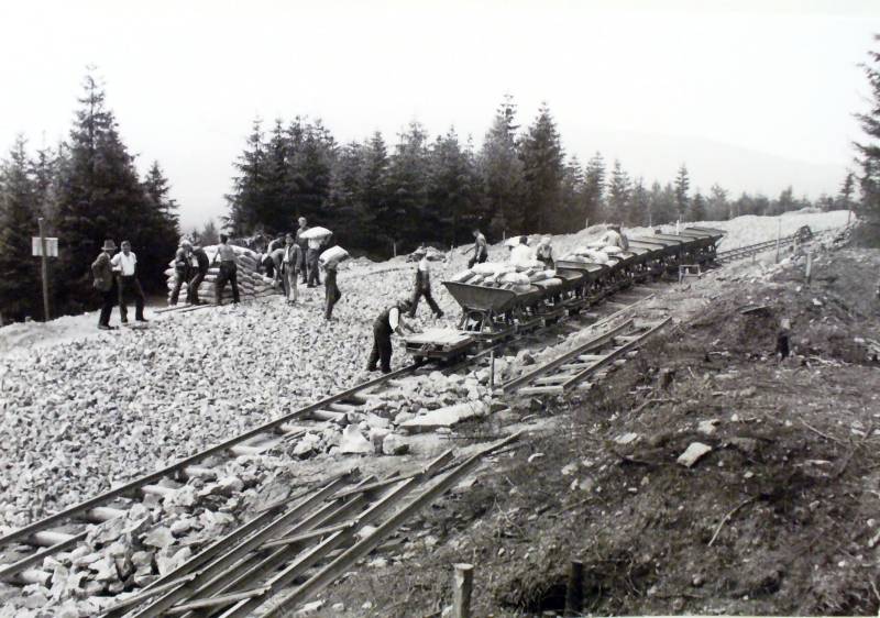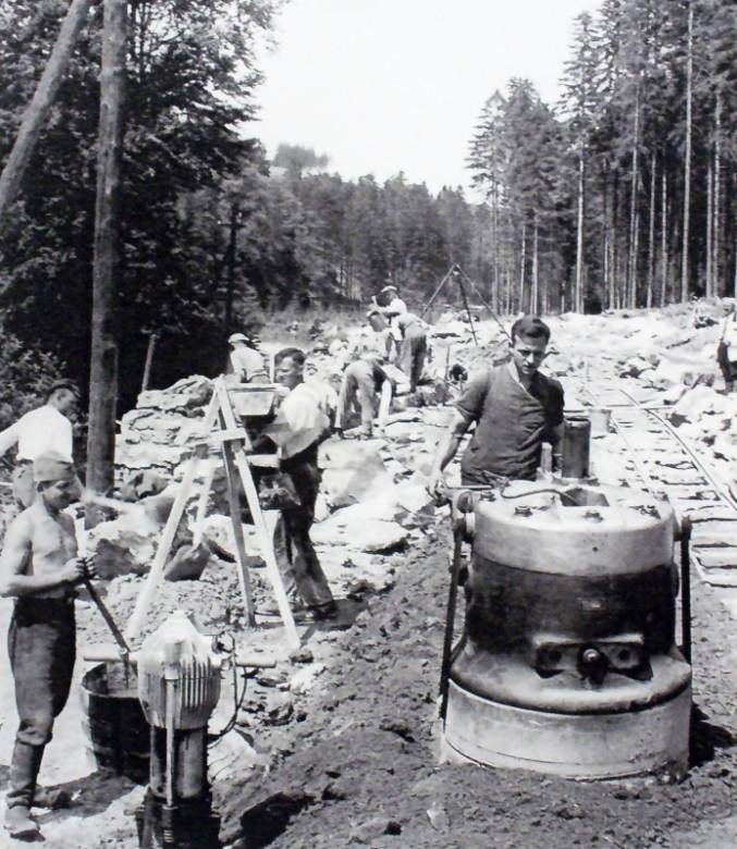 - 1 October 1909 - The first stage of construction is completed in the area of Świeradów-Zdrój, the work involving rock shelves hammered in the slopes of the Kamienicki Ridge and a bridge over the Kwisa River.