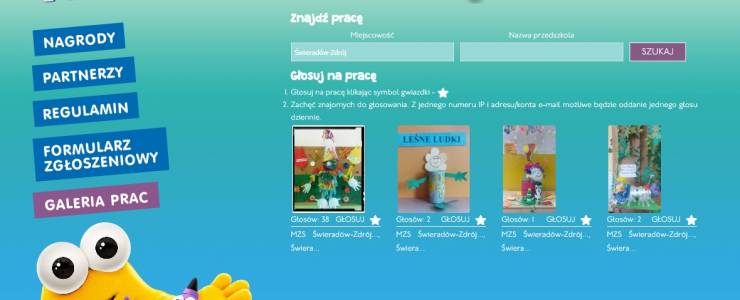 - wybrać jedną z prac naszych przedszkolaków - aby to zrobić, wystarczy wpisać nazwę miejscowości w odpowiednią rubryczkę i nacisnąć ikonkę SZUKAJ,