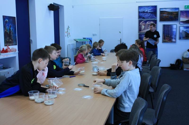 Zajęcia w ramach Klubu Biologa dedykowane są dzieciom w wieku od 8 do 12 lat. 28 stycznia odbyło się pierwsze spotkanie, w którym wzięło udział 15 dzieci, ale już w ciągu dwóch kolejnych dni, lista warsztatowa została zamknięta. Zajęcia prowadzi Pan Wojciech Zawadzki z firmy EDUza, biolog, który świetnie inspiruje dzieci światem przyrody.