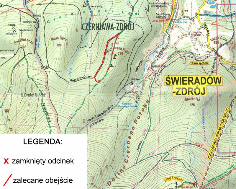 Informujemy, że w związku z rozpoczęciem robót drogowych przy Czerniawskiej Kopie, został zamknięty fragment zielonego szlaku.