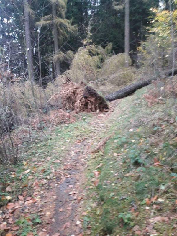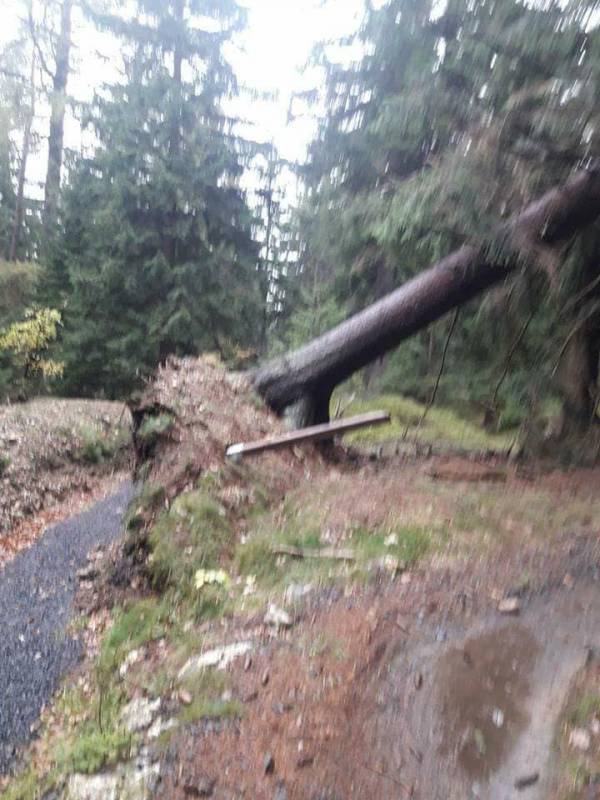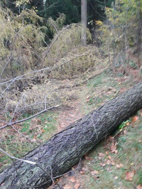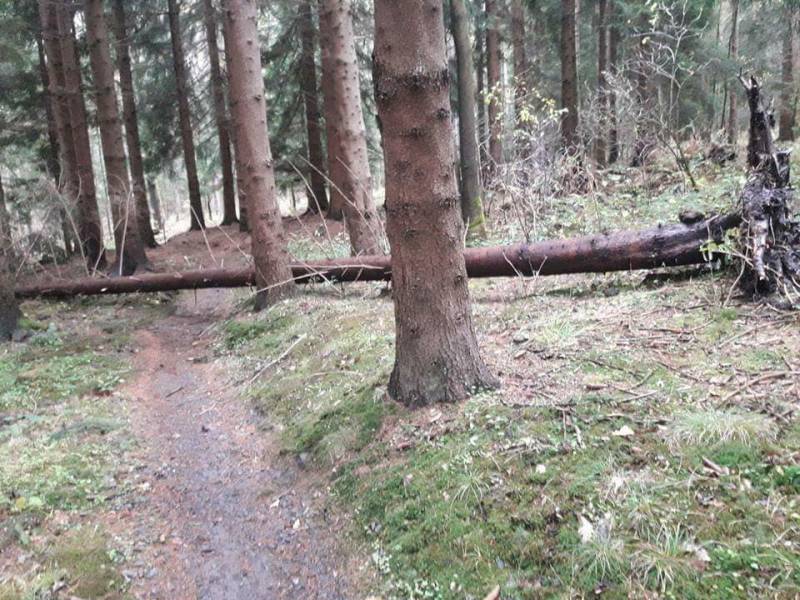 Na trasach Single Track Świeradów-Zdrój na Zajęczniku, orkan Grzegorz "porozrzucał" drzewa, prosimy o ostrożność, za utrudnienia przepraszamy, postaramy się jak najszybciej udrożnić ścieżki. (Fot. P.Mikołajczak)