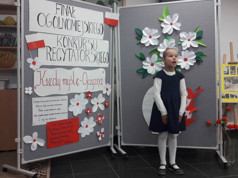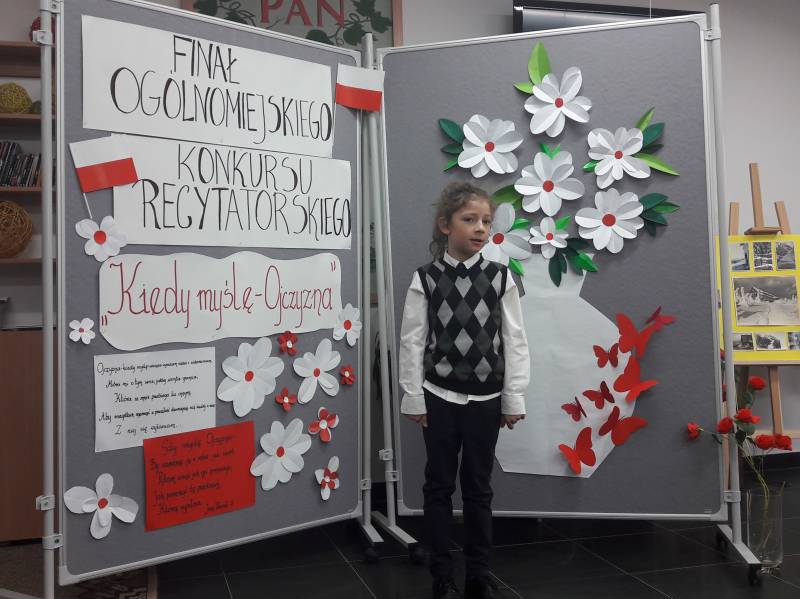 25 kwietnia 2018 r w Miejskiej Bibliotece Publicznej :Izerka" w Świeradowie-Zdroju odbył się Ogólnomiejski Konkurs Recytatorski „ Kiedy Myślą – Ojczyzna” pod honorowym patronem Burmistrza Miasta Świeradów-Zdrój, do którego przystąpiło 17 recytatorów z gminnych placówek oświatowych.