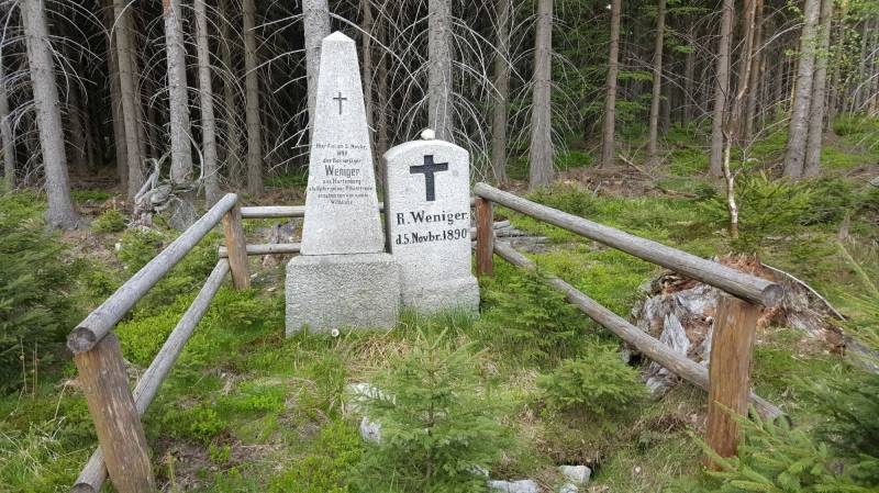 5. listopada 1890 r. leśniczy Weniger podczas obchodu swego rewiru Kopaniec zauważył kłusownika. Ten zaskoczony nagłym spotkaniem z opiekunem lasu wystrzelił ze swej broni raniąc leśniczego w klatkę piersiową. Weniger zdążył oddać w stronę nielegalnego myśliwego dwa strzały, jednak obrażenia nie pozwoliły mu na dalszy pościg. Strzelaninę i krzyki usłyszał gospodarz budy Ludwika na Rozdrożu Izerskim. Odnalazł on leśniczego i przeniósł go do schroniska. Mimo opatrzenia ran i dość szybko udzielonej pomocy, Weniger zmarł. Kłusownikowi udało się uciec. Nie chcąc oddać się w ręce wymiaru sprawiedliwości schronił się w Czechach, a następnie wyemigrował do Ameryki. Tam dorobił się okazałego majątku, jednak nękany wyrzutami sumienia postanowił finansowo wspierać rodzinę leśniczego Wenigera przesyłając jej anonimowe datki. Rodzina Wenigera na miejscu zdarzenia postawiła kamienny pomnik, a las, w którym doszło do spotkania leśnika z kłusownikiem nazywano „śmiercić Wenigera” (Wenigerstod).