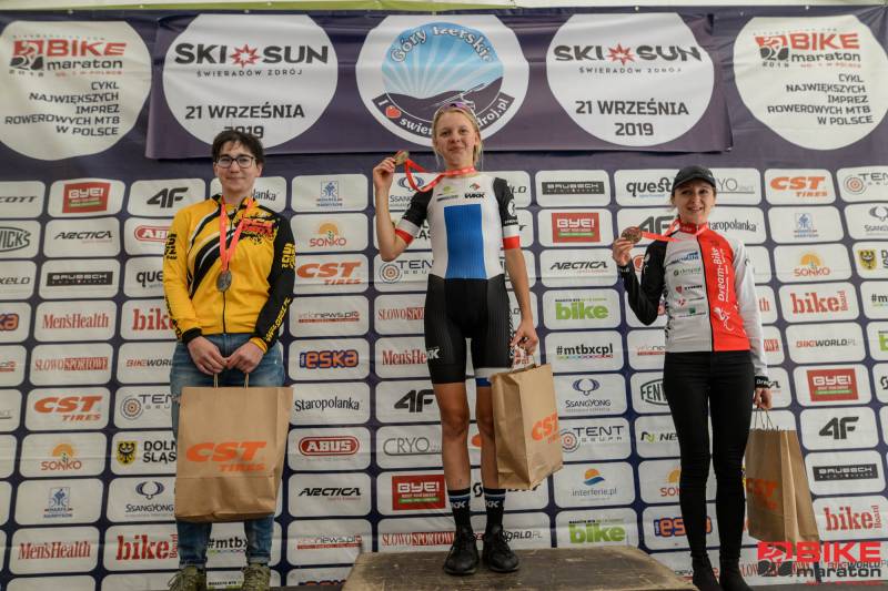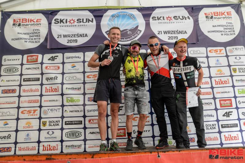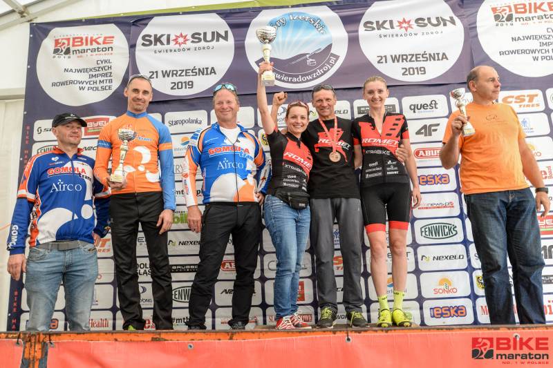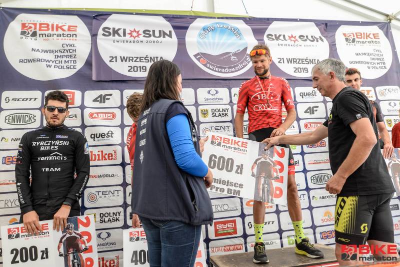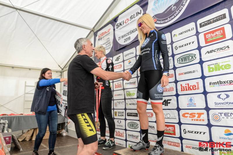 Wojciech Halejak (JBG2 Cryospace) i Anna Urban (Volkswagen Samochody Użytkowe MTB Team) wygrywają przedostatnią edycję Bike Maratonu 2019 rozegraną w miniony weekend w Świeradowie – Zdroju. Na głównym dystansie było tym razem do przejechania 71 km, a mimo przewyższeń, które wyniosły w sumie ok. 2000 m, Halejak pokonał tę trasę w czasie poniżej trzech godzin. Uczynił to zresztą z kolegą z teamu – Mariuszem Kozakiem, który był drugi, ale pewnie tylko dlatego, że ktoś przecież musiał wygrać. Trzeci był Mikołaj Dziewa (SGR Specialized), który również złamał w Świeradowie trzy godziny. Zrobił to jeszcze Łukasz Klimaszewski (Mitutoyo AZS Vratislavia), który wygrał kategorię M3. Halejak był więc najlepszy w klasyfikacji BM PRO, w której tym razem ścigały się tylko dwie panie – Anna Urban była pierwsza, a Magdalena Wojtyła (Immotion Specialized Skoda Gall ICM Team) druga.