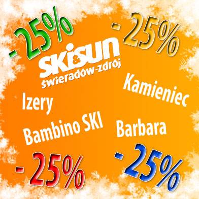 Od dzisiaj do 24 grudnia włącznie obniżka na karnety i bilety narciarskie nawet do 25 %. Zapraszamy na stoki: