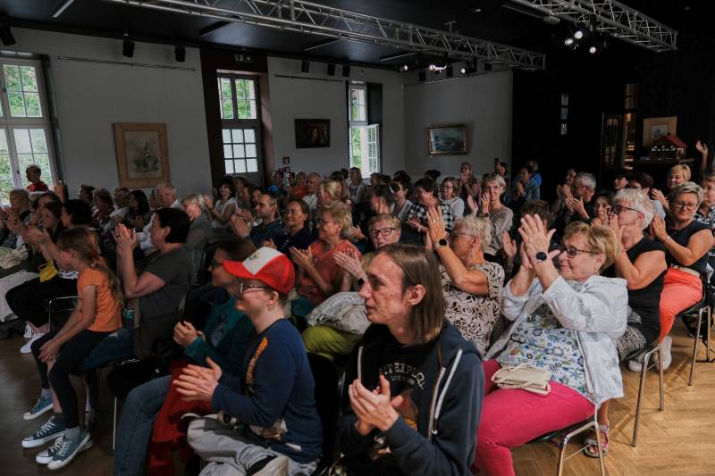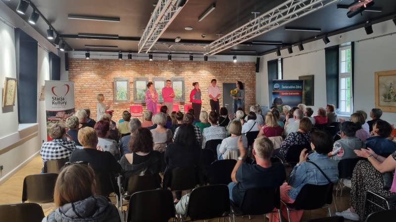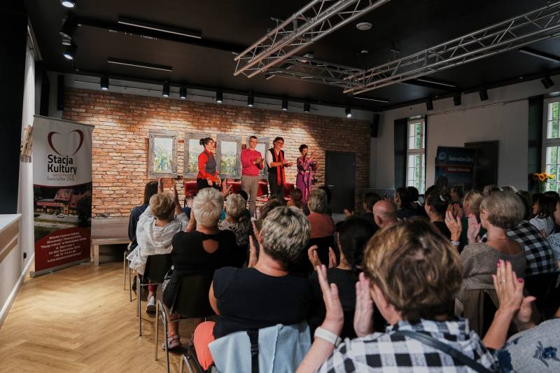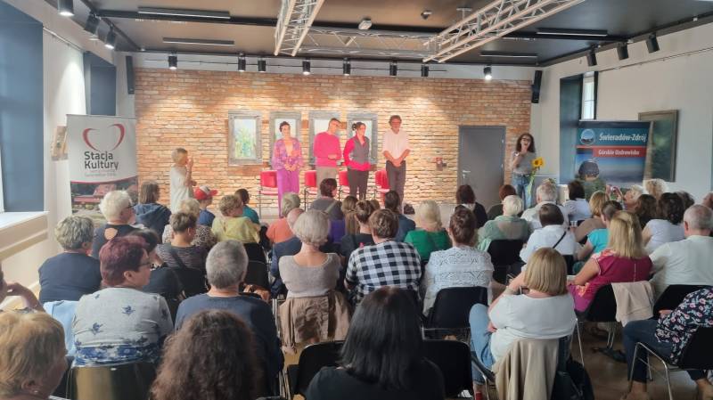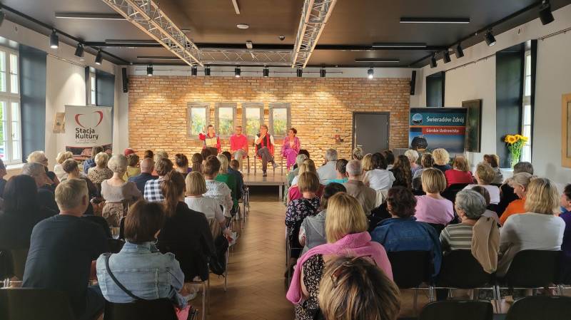 04.08.2023 amatorski Teatr 55 działający przy MOK w Kowarach zaprezentował na deskach sceny w Stacji Kultury komedię Grzegorza Reszka. W trakcie spektaklu aktorzy weszli w bardzo ciekawą interakcję z widzami, co przypadło go gustu publiczności, która nagrodziła artystów gromkimi brawami.