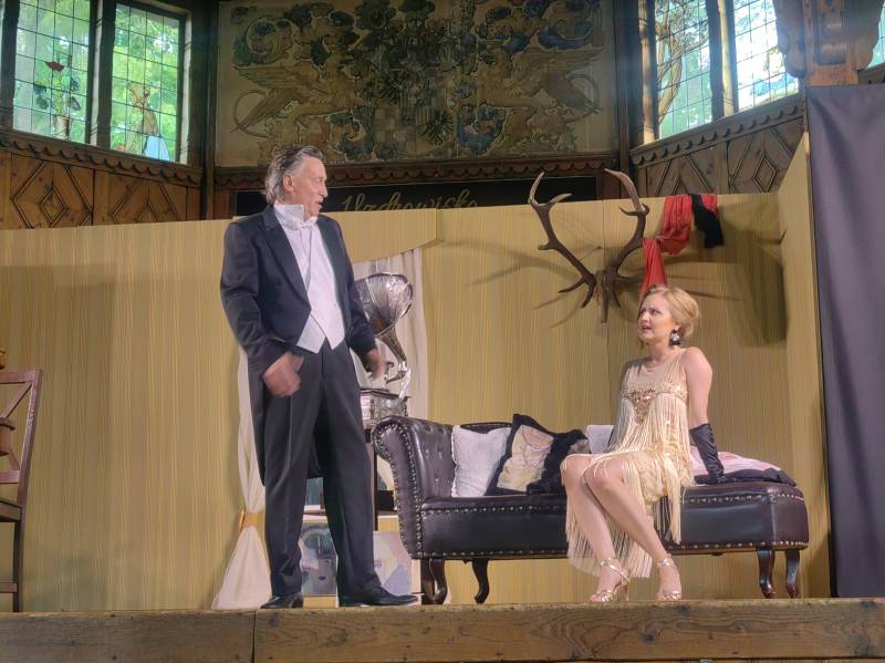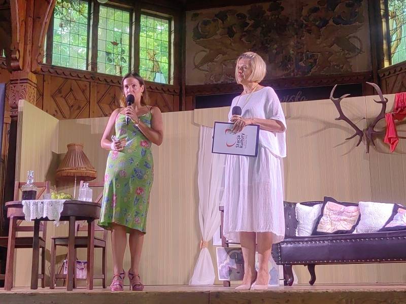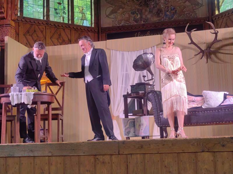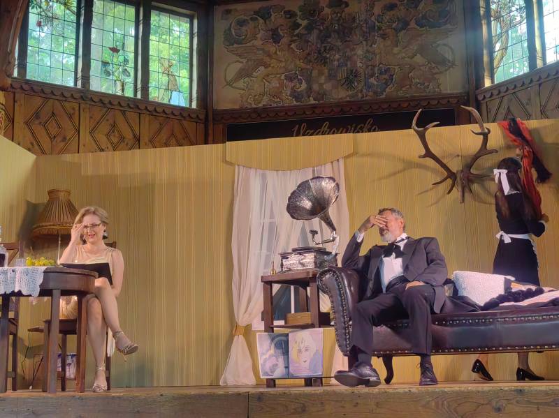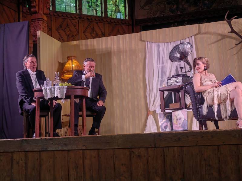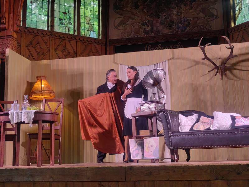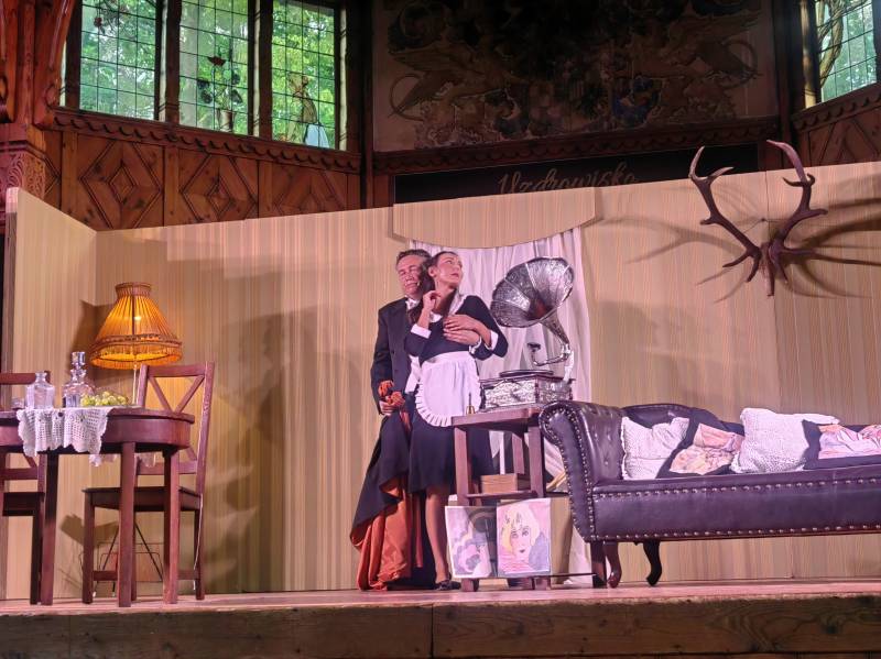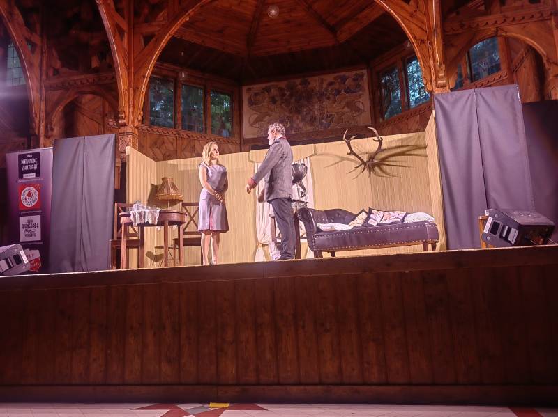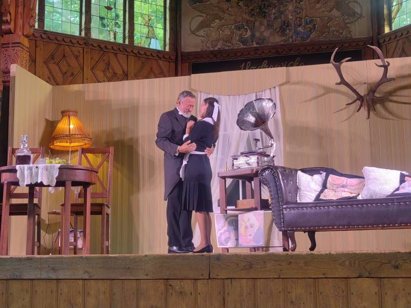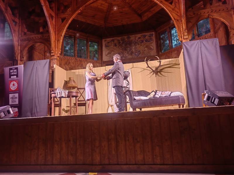 Znakomita obsada w składzie: Natalia Pietrasz, Aneta Gierat, Maciej Luśnia i Jan Korwin-Kochanowski, przeniosła nas do lat 20. ubiegłego stulecia i zawiłych romansów… Wszak napisany przez zaledwie dwudziestokilkuletniego Aleksandra Fredrę tekst sztuki w trzech aktach wierszem – o niewiernej Elwirze, o jej szukającym miłosnych uniesień mężu Wacławie, o kochanku Alfredzie oraz o całą te trójkę wodzącej za nos pokojówki Justysi – spotkał się z ogromnym zainteresowaniem zgromadzonej publiczności, a owacji na stojąco nie było końca. Głównymi atutami wystawionej sztuki „Mąż i Żona” byli znakomici aktorzy z Krakowa oraz przedni humor przenikający kunsztowne poetyckie frazy. Kto nie był z nami, niech żałuje…