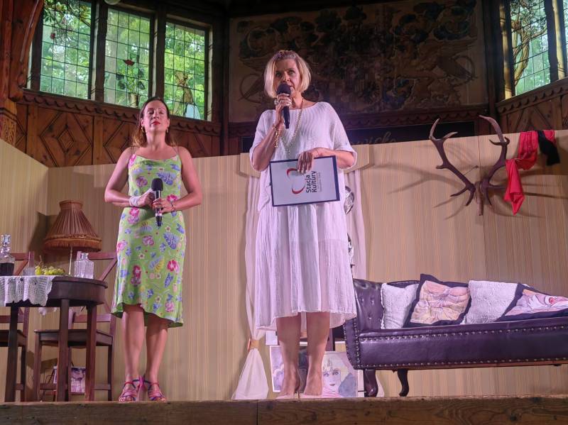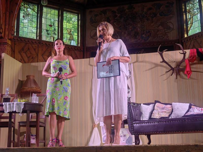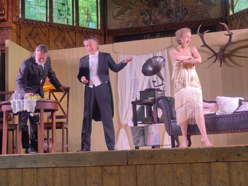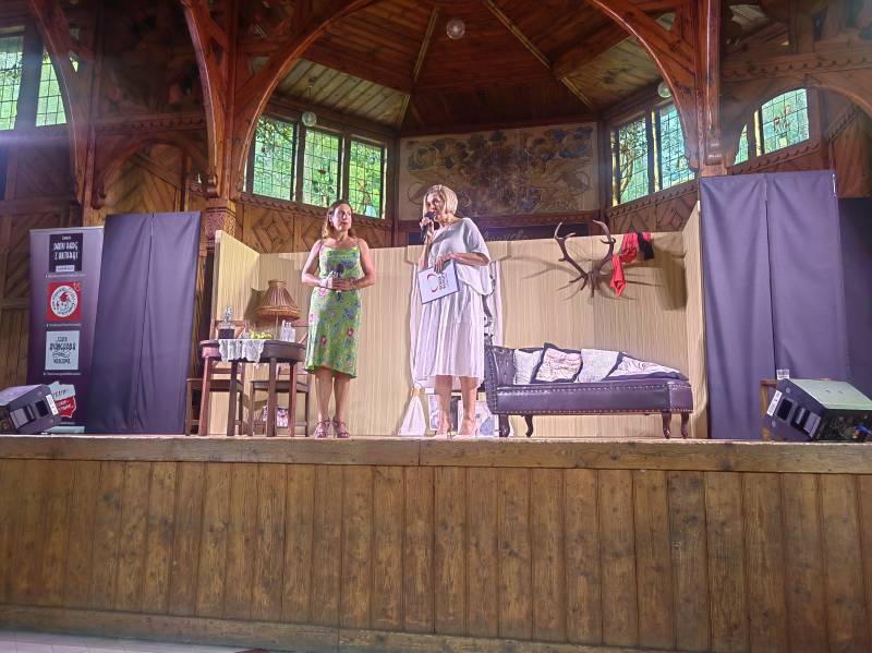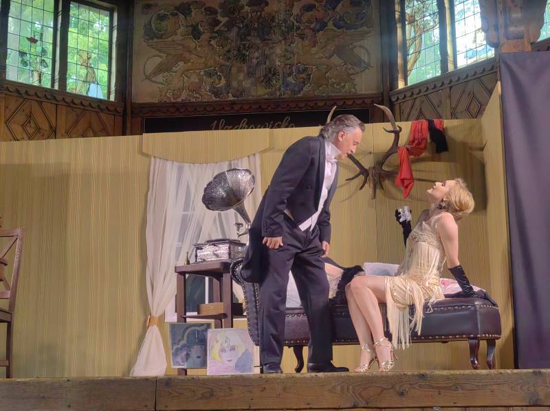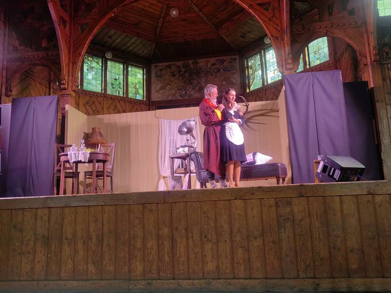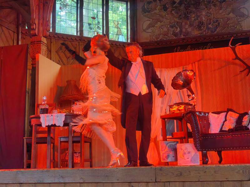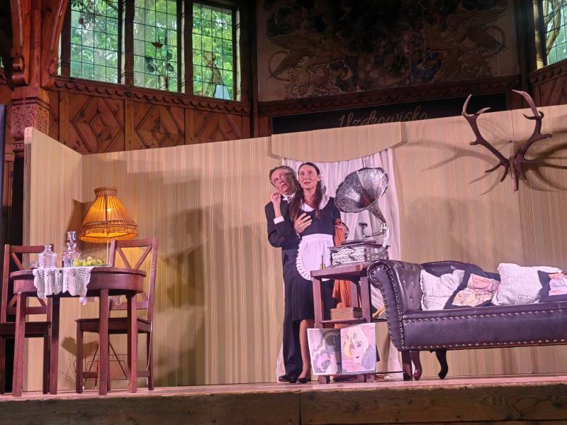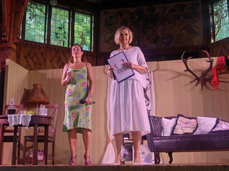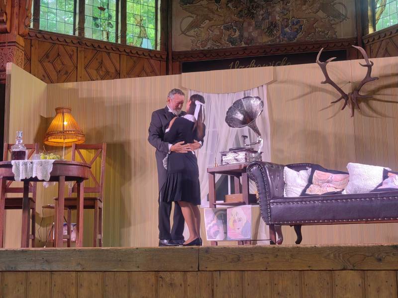 Znakomita obsada w składzie: Natalia Pietrasz, Aneta Gierat, Maciej Luśnia i Jan Korwin-Kochanowski, przeniosła nas do lat 20. ubiegłego stulecia i zawiłych romansów… Wszak napisany przez zaledwie dwudziestokilkuletniego Aleksandra Fredrę tekst sztuki w trzech aktach wierszem – o niewiernej Elwirze, o jej szukającym miłosnych uniesień mężu Wacławie, o kochanku Alfredzie oraz o całą te trójkę wodzącej za nos pokojówki Justysi – spotkał się z ogromnym zainteresowaniem zgromadzonej publiczności, a owacji na stojąco nie było końca. Głównymi atutami wystawionej sztuki „Mąż i Żona” byli znakomici aktorzy z Krakowa oraz przedni humor przenikający kunsztowne poetyckie frazy. Kto nie był z nami, niech żałuje…